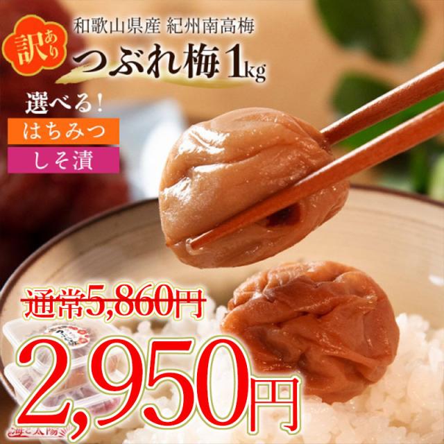 【SALE!3210円OFF】1kg 紀州南高梅つぶれ梅 ※東北・北海道は送料590円をオプション選択 訳あり うめ ウメ 梅干し はちみつ しそ漬 大容量 徳用 料理 お弁当 おにぎり 国産 和歌山県産 海と太陽 送料無料 秋バテ クリスマス 年末年始