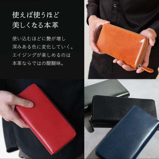 伝統的なベジタブルタンニン鞣しを施したイタリアンレザー製。手触りが良く、使い込むほどに艶と色合いが深まるエイジングをお楽しみ頂けます。トレンドに左右されないシンプルなデザインで、長くご愛用いただきたいロングウォレットです。