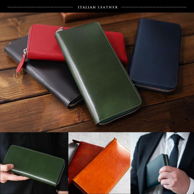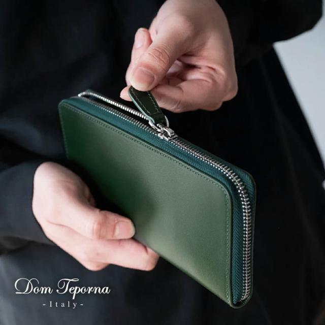 【限定1,000円OFFクーポン】【4,980円→3,980円】Dom Teporna Italy 膨らみにくい大容量長財布 メンズ 本革 カード大容量14枚 ラウンドファスナー イタリアンレザー 小銭入れ カード入れ 薄い スリム