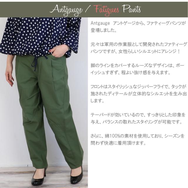 Antgauge アントゲージ ファティーグパンツ( c2197 ) リラックスフィット ややルーズ テーパードシルエット コットン 綿100% ミリタリーパンツ レディース パンツ オールシーズン おしゃれ アーベン 普段使い 実用的 2025年