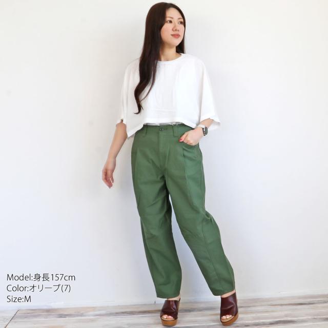 元々は軍用の作業服として開発されたファティーグパンツですが、女性らしいシルエットにアレンジ!