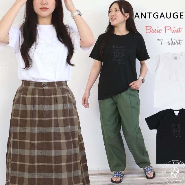 Antgauge 半袖Tシャツ アントゲージ ベーシック 発泡プリント 半袖 Tシャツ ( D1137 ) ロゴプリント フリーサイズ 綿100% ソフト天竺 シンプル ホワイト ブラック ロゴTシャツ レディース トップス おしゃれ アーベン スペシャル 普段使い 実用的 日本製