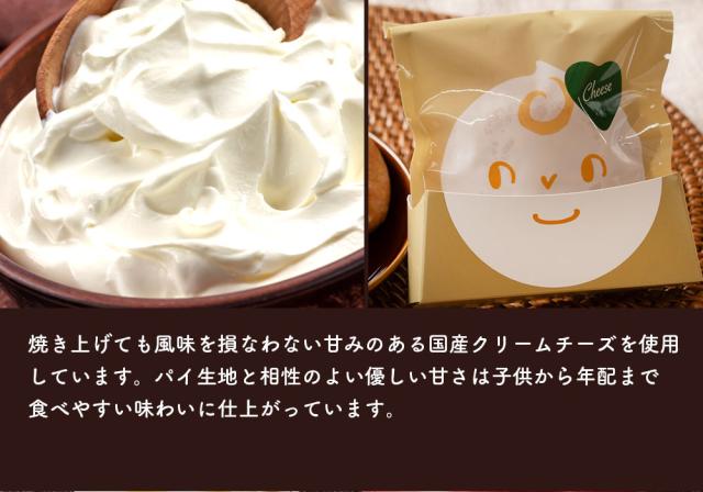 ・国産チーズの実…焼き上げても風味を損なわない甘みのある国産クリームチーズを使用。パイ生地との相性は抜群です。