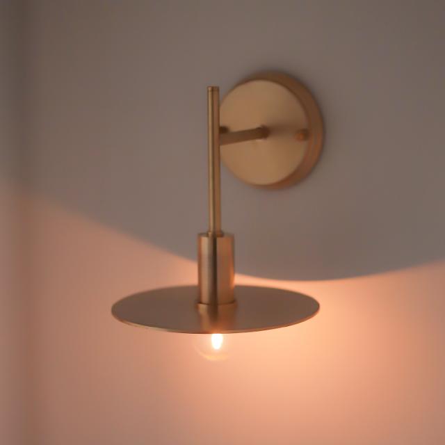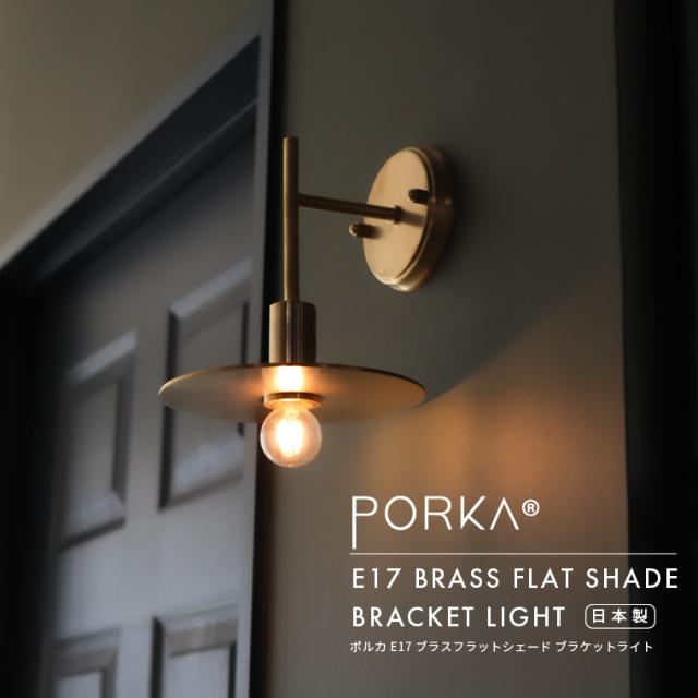 E17ブラスフラットブラケットライト 日本製 ポルカ ウォールライト 真鍮製 丸い 円盤シェード 平ら 円形 壁付け ブラケット照明 壁用 おしゃれ かっこいい 高級感 階段 廊下 洗面台 寝室 人気 間接照明 PORKA