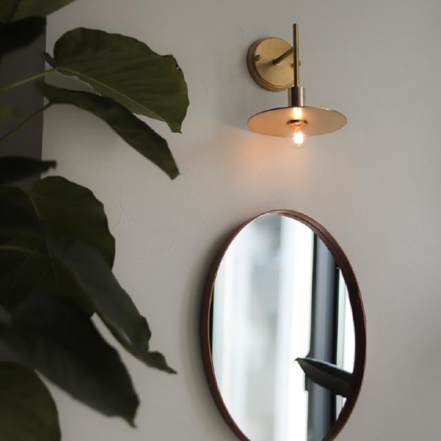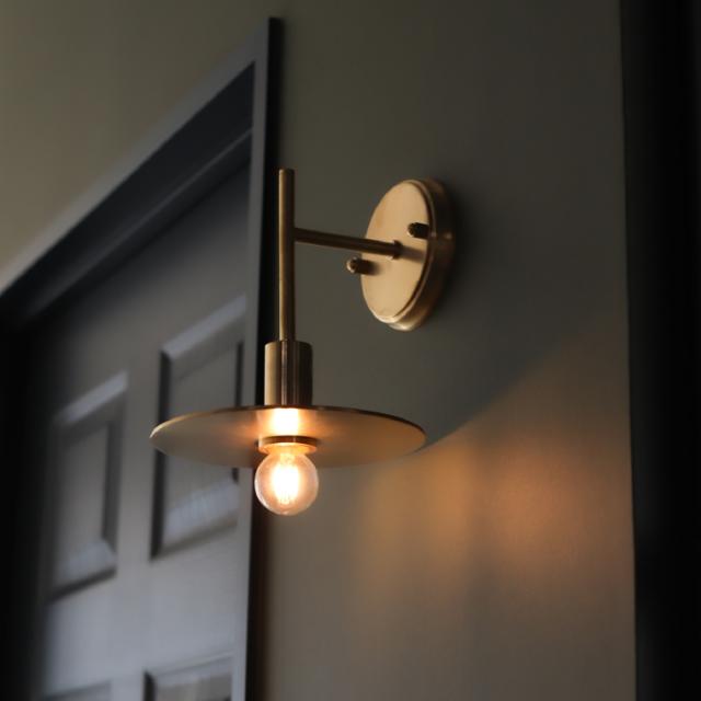 重厚感のある丸い円形シェードの真鍮製ブラケットライト。