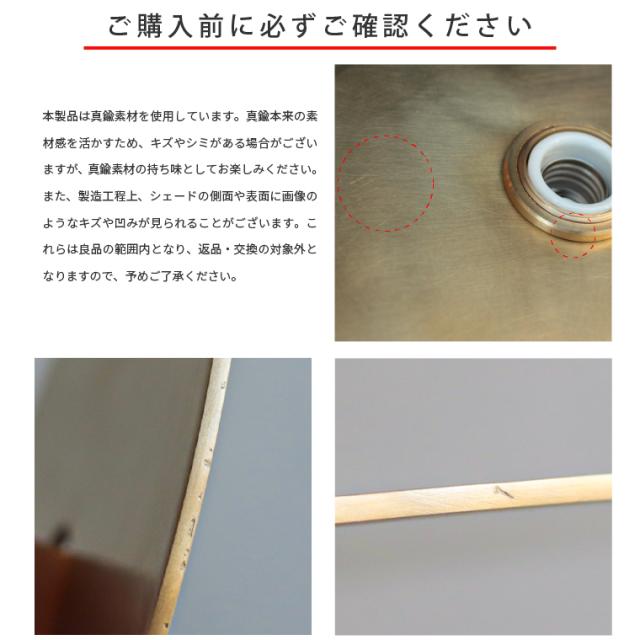 | 注意事項 | ●こちらの照明は、屋内の取り付けのみ対応です。 ●取り付け工事に関しては、専門店、工務店、電気工事店までご相談頂きますようお願いいたします。 ●傾斜のある天井・壁、凹凸のある天井・壁ではご使用いただけません。必ず平らな場所に取り付けてください。また、重量がありますので、木ネジは必ず補強材のある位置に取り付けてください。 ●画像はご覧になっているモニター、パソコン、環境などにより実際の商品と色味が事なる場合がございます。予めご了承ください。 【真鍮商品について】 真鍮の素材をそのまま活かすため色むらがあったりシミのように見える場合があります。商品によって一つ一つ異なりますが、製品の特徴として、また真鍮の変わりゆくアンティーク感としてお楽しみください。また、素手で触れた部分は変色の原因となりますので、取り付けの際は素手で触らないようにご注意ください。真鍮製品の特性のため、色むら、黒ずみ、くすみなどによる返品・返金はできかねますので、予めご了承ください。 |
