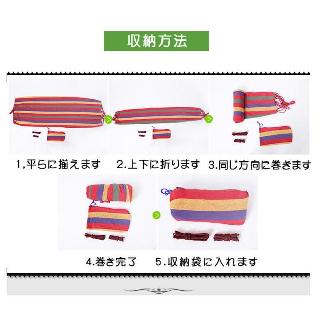 自宅、公園、キャンプ、ビーチ、釣り、ピクニック、バーベキュー、パーティー様々な場合に大活躍!ハンモック生地の素材はコットンなので、寝心地は間違いありませんね。使用している生地がしっかりしていて体を包み込むように寝る事が出来るので季節の良い日にゆらゆら揺れながらのお昼寝は最高です