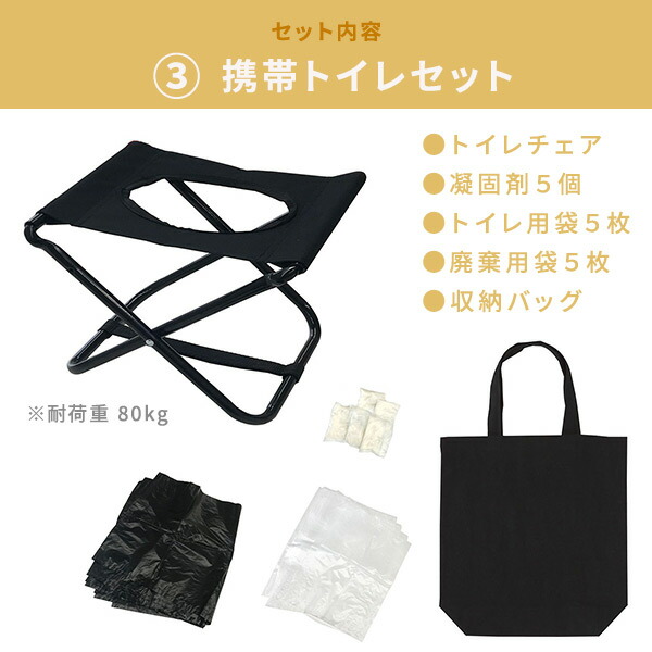 | 商品説明 | ●避難時、緊急時に役立つ3種類の防災グッズ ●セット内容:給水タンク15L、携帯トイレセット(5回分)、ランタンライト ●給水タンク: ・ノズルコックタイプ ・ハンドル2本付き ●携帯トイレセット(5回分): ・トイレチェア、凝固剤5個、トイレ用袋5枚、廃棄用袋5枚、収納バッグ ・耐荷重:約80kg ●ランタンライト: ・単3乾電池×3本使用(別売り) ・連続点灯時間:(強)約14時間、(弱)約24時間、(点滅)約24時間 ・フック付きでかけられる |