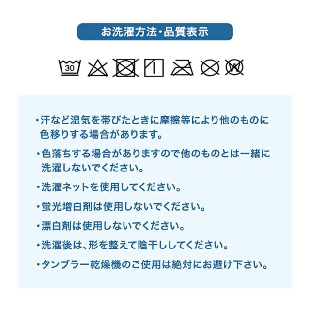 ※洗濯後はつけおきしないで、形を整え直ちに干してください。