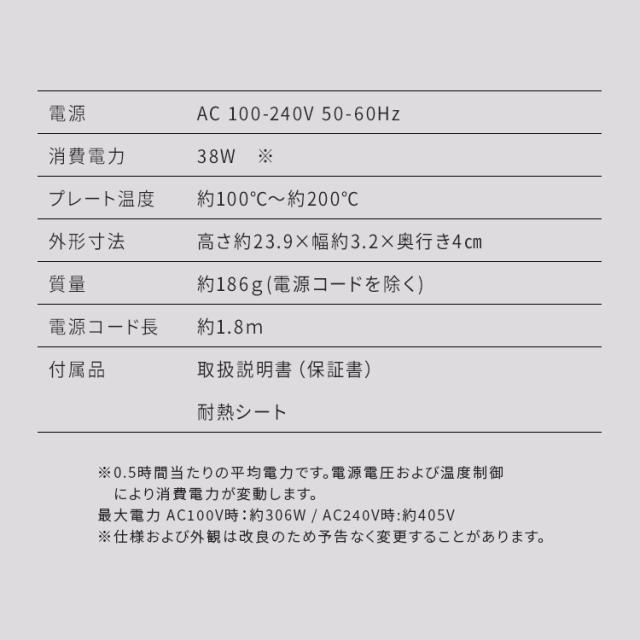 180℃まで約34秒という圧倒的な立ち上がりスピードと約186gという軽量設計で、一般ユーザーにとっても使い回しバツグンの仕様です。