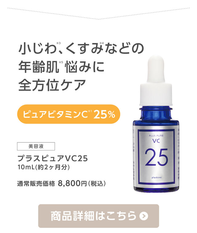 | 商品名 | プラスピュアVC25 ●配合成分につきましては、上記の商品名をタップしてご確認ください。 |