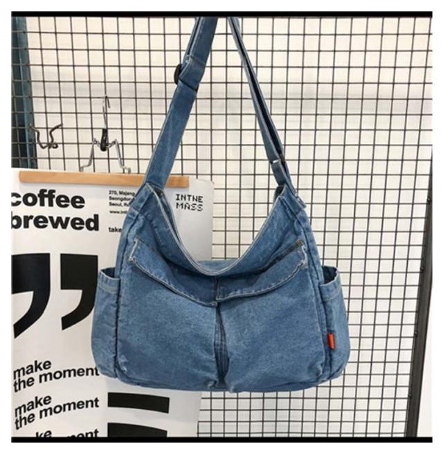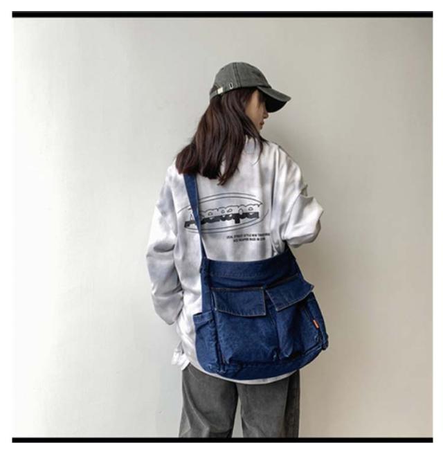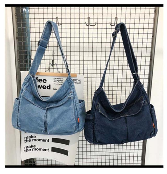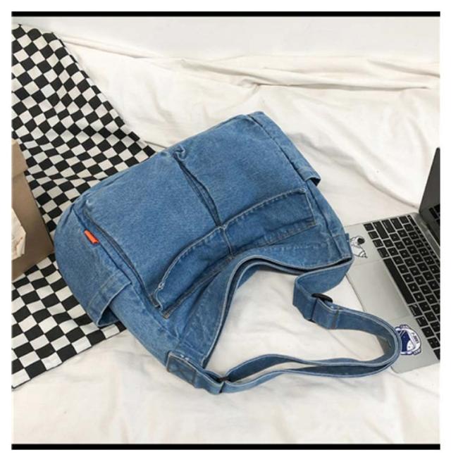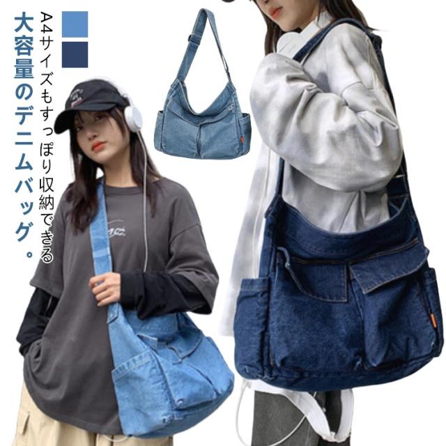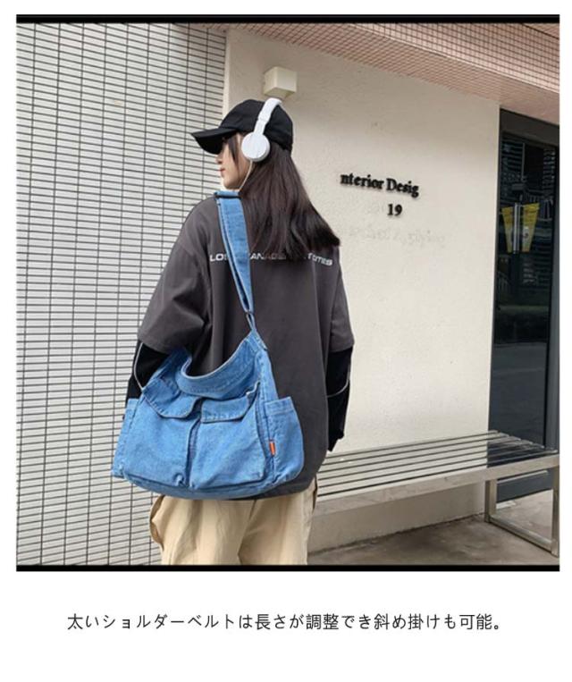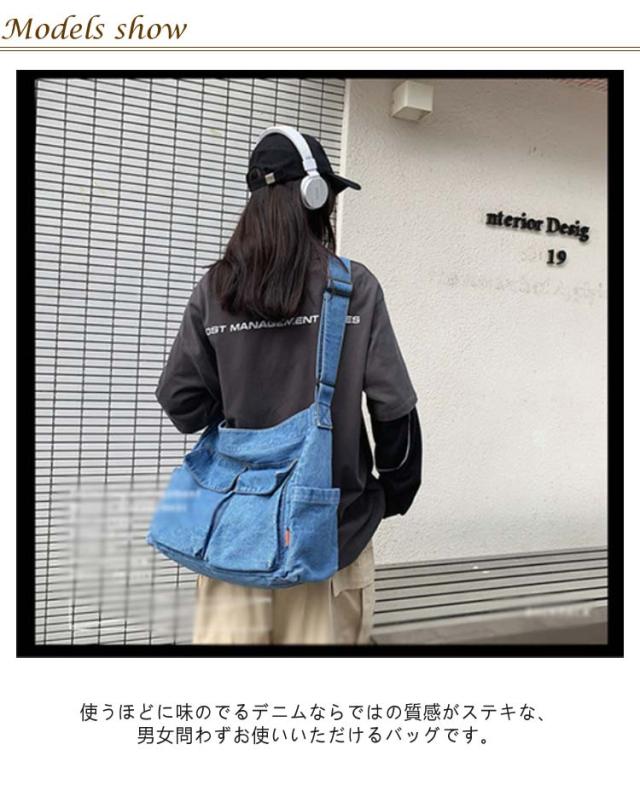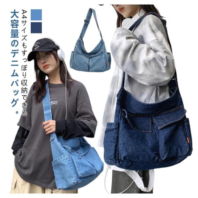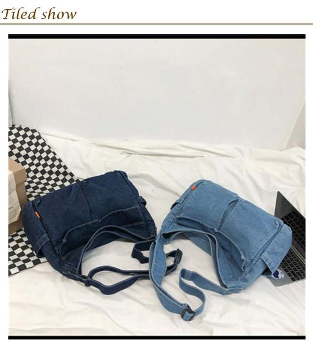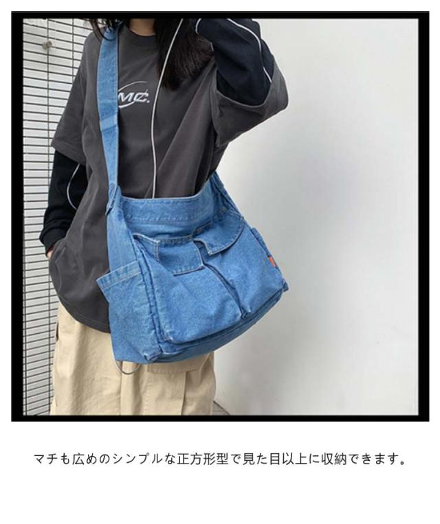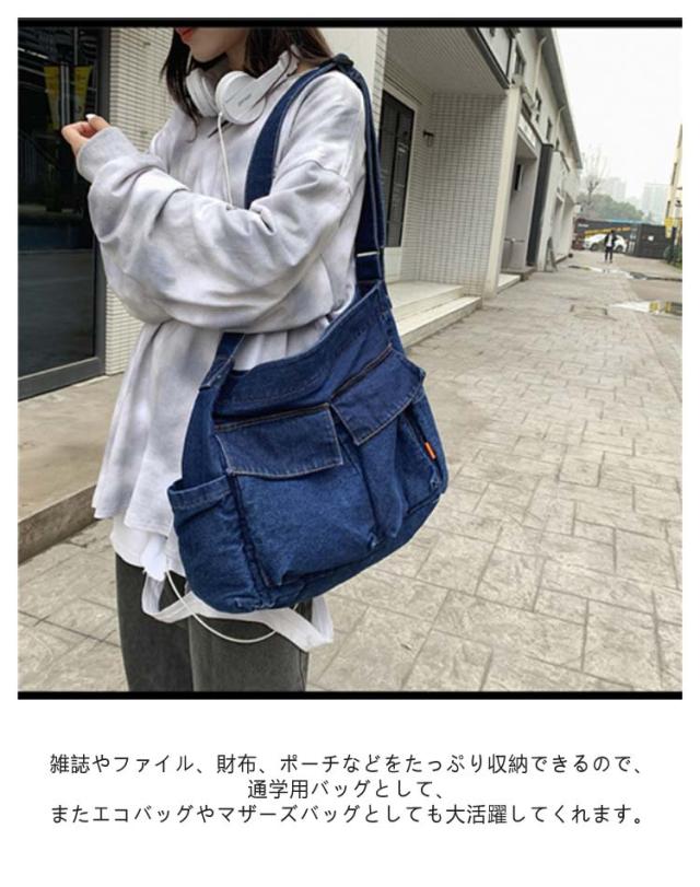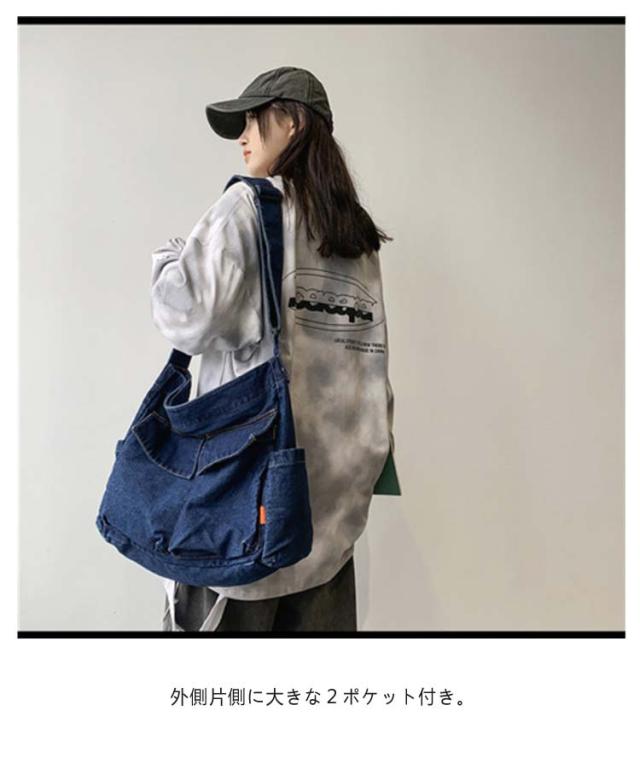 ジーンズ素材 ショルダーバッグ トートバッグ レディース ポケット多い バッグ お出かけ スクエア ハンドバッグ 男女兼用 ショルダーバッグ カバン バック 大容量 メンズ 肩がけ 斜め掛け 通学