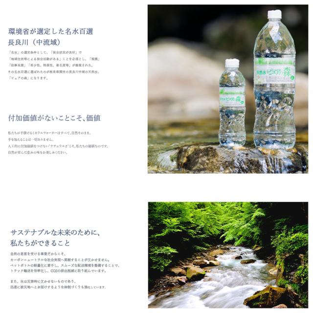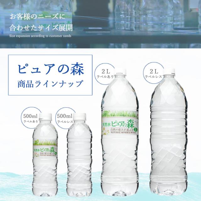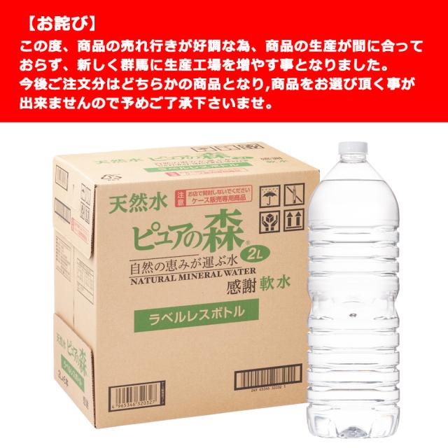 ラベルレス 国産 ミネラルウォーター ピュアの森 2000ml 6本 天然水 軟水 水 みず 2リットル 2l 2L ペットボトル お水 1ケース 送料無料 硝酸態窒素 亜硝酸態窒素 PFOS PFOA PFAS 検出限界以下