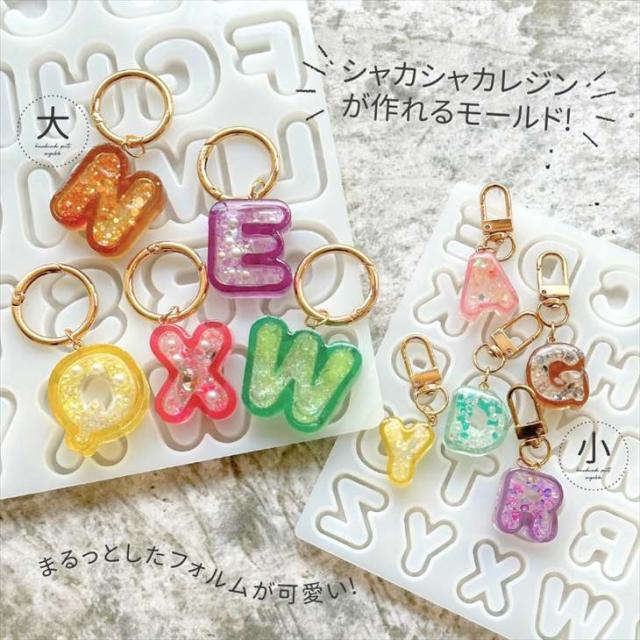 シリコンモールド アルファベット シャカシャカ シェイカー 大 小 アクセサリー パーツ イニシャル 大文字 丸文字 フィルム レジン シリコン モールド シリコン型 問屋 UVレジン LEDレジン シリコーン クラフト 型 レジン用品 さや工房 手作り アクセサリーパーツ 卸 おすすめ