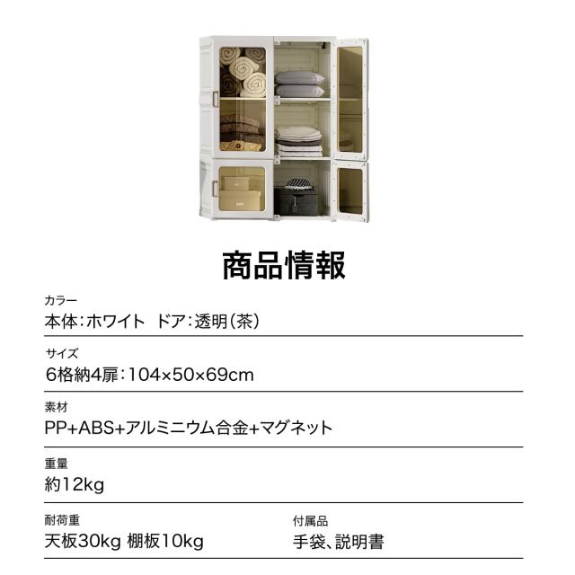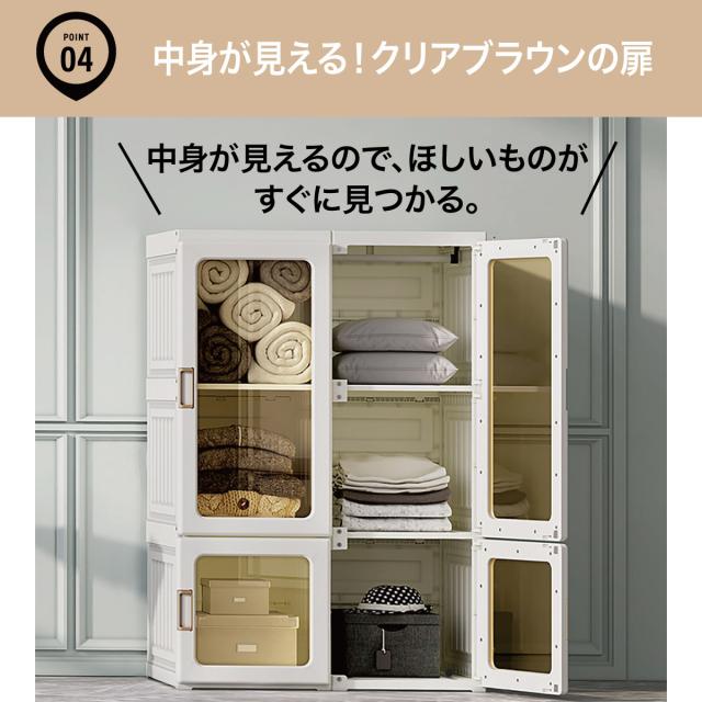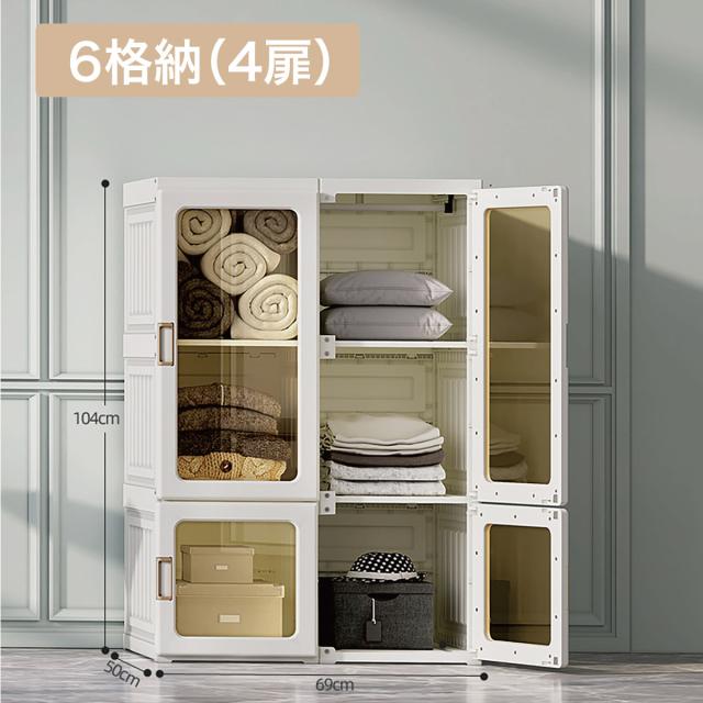 ワードローブ 一体折りたたみ式 6格納(4扉)洋服ダンス ワイドロッカー クローゼット ロッカー 収納ケース 収納 衣類 洋服 新生活 おしゃれ wardrobe02-6 agesugi_snk