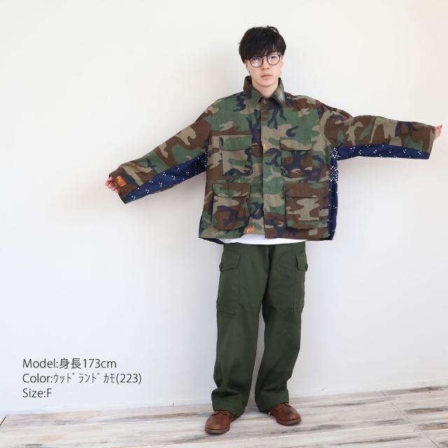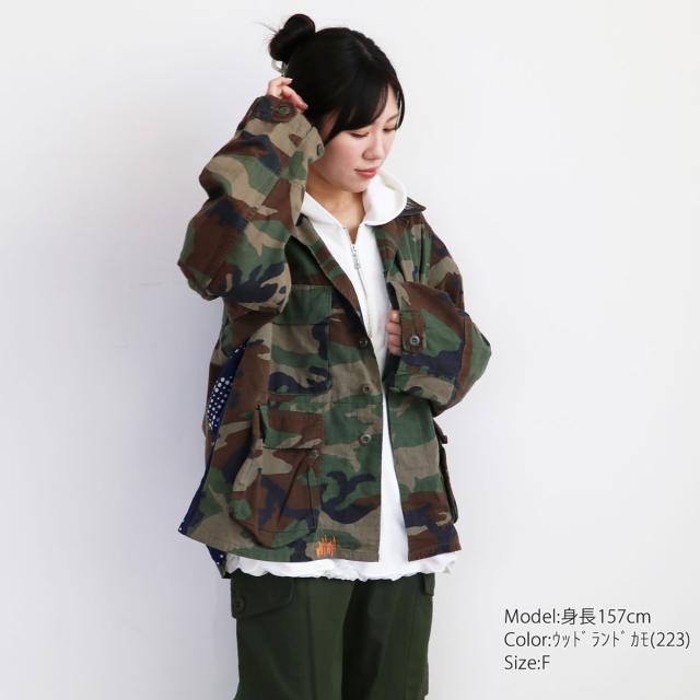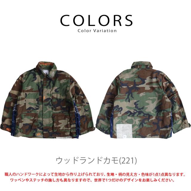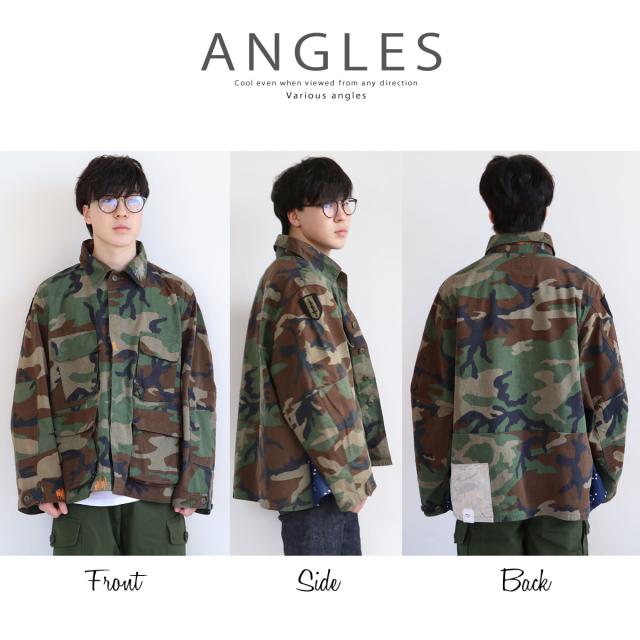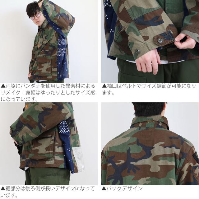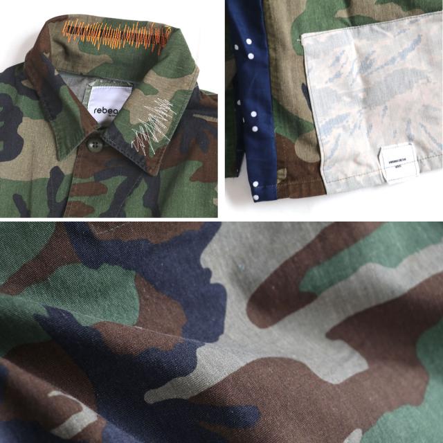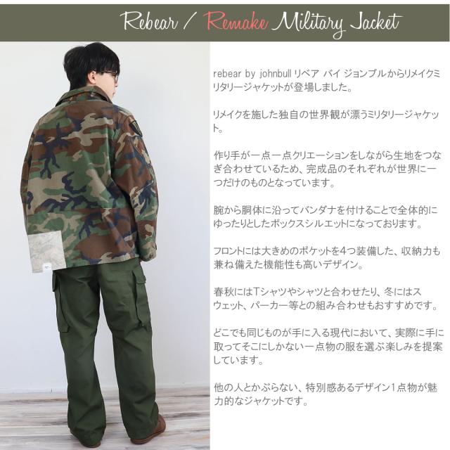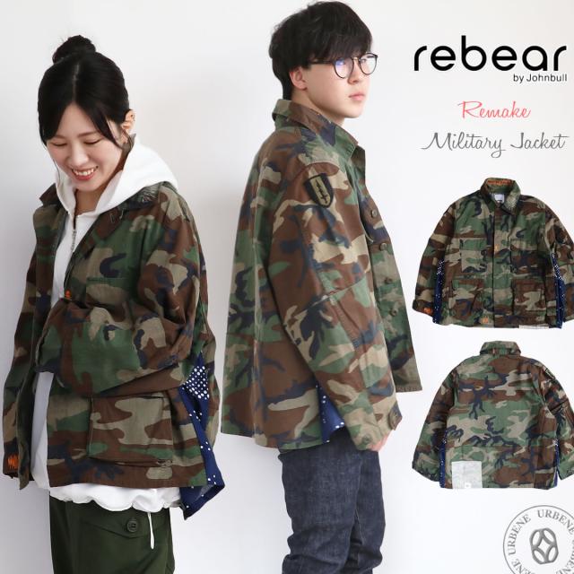【世界に一つだけのデザイン】 リベアバイジョンブル rebear by Johnbull メンズ レディース リメイク ミリタリージャケット ( re241l13 ) 羽織り 一点物 手作り 軍物 迷彩 古着 異素材 リビルド リベアー リペア フリーサイズ アーベン おしゃれ John bull 2025年