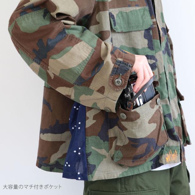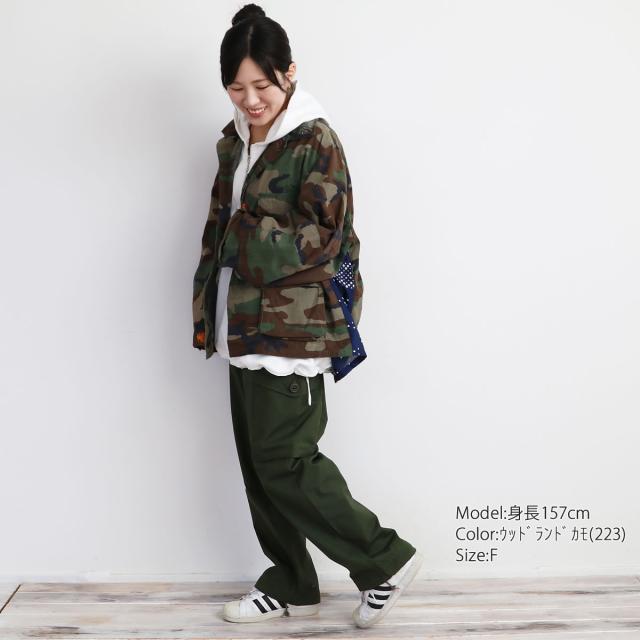 ■ rebear by johnbull リベアバイジョンブル 商品説明 rebear by johnbull リベア バイ ジョンブルからリメイクミリタリージャケットが登場しました。 リメイクを施した独自の世界観が漂うミリタリージャケット。 作り手が一点一点クリエーションをしながら生地をつなぎ合わせているため、完成品のそれぞれが世界に一つだけのものとなっています。 腕から胴体に沿ってバンダナを付けることで全体的にゆったりとしたボックスシルエットになっております。 フロントには大きめのポケットを4つ装備した、収納力も兼ね備えた機能性も高いデザイン。 春秋にはTシャツやシャツと合わせたり、冬にはスウェット、パーカー等との組み合わせもおすすめです。 どこでも同じものが手に入る現代において、実際に手に取ってそこにしかない一点物の服を選ぶ楽しみを提案しています。 他の人とかぶらない、特別感あるデザイン1点物が魅力的なジャケットです。 ※リビルド商品に関しましては、画像とのデザインの違いや個体差が大きいため、画像や表記サイズは目安としてご覧ください。 以上の点を商品の魅力としてご理解いただいた上で、どのようなデザインが届くのかを楽しみにお待ちいただけましたら幸いです。 【サイズやデザインがご不安な場合はお気軽にお申し付け下さいませ。】 |