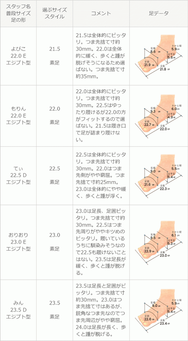 ※足の形には個人差があります。スタッフ試着感想は参考程度にお考え下さい。