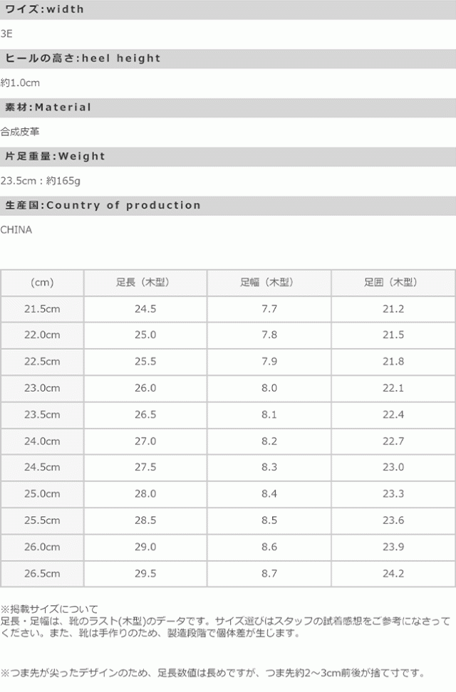 足長(木型):24.5cm/足幅(木型):7.7cm