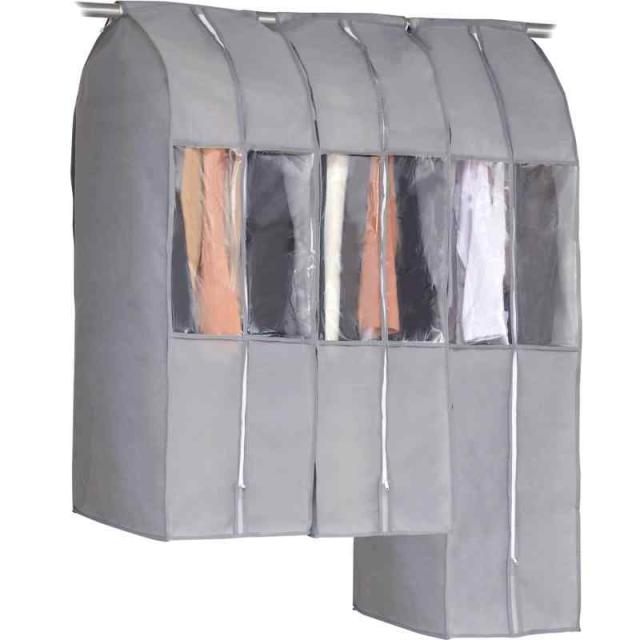 アストロ 衣類カバー 幅広マチ付き 洋服カバー 通気性の良い不織布製 クローゼット 吊り下げ収納 衣類をまとめて収納できる (01_グレー)