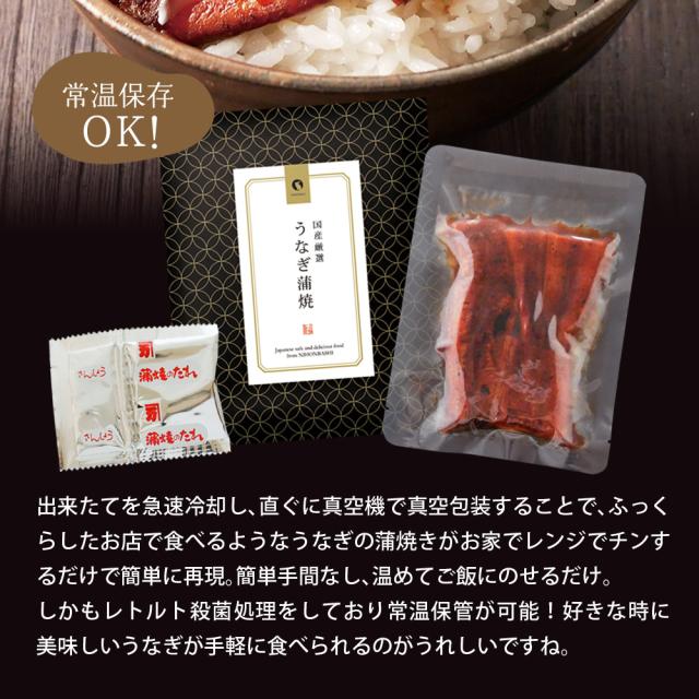 うなぎ(国内産)、しょうゆ(小麦・大豆を含む)、みりん、発酵調味料、ぶどう糖果糖液糖、砂糖/増粘剤(加工でんぷん)、着色料(カラメル・紅麹)、調味料(アミノ酸等)、増粘多糖類