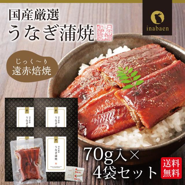 うなぎ 国産うなぎ蒲焼 70g 4個セット メール便 送料無料 国産 鰻 ウナギ 蒲焼常温保存 レトルト殺菌 土用の丑の日 ご飯のおとも プレゼント お礼 贈答 内祝い 贈物 プチギフト お惣菜 時短 おかず 食品 ポイント消化