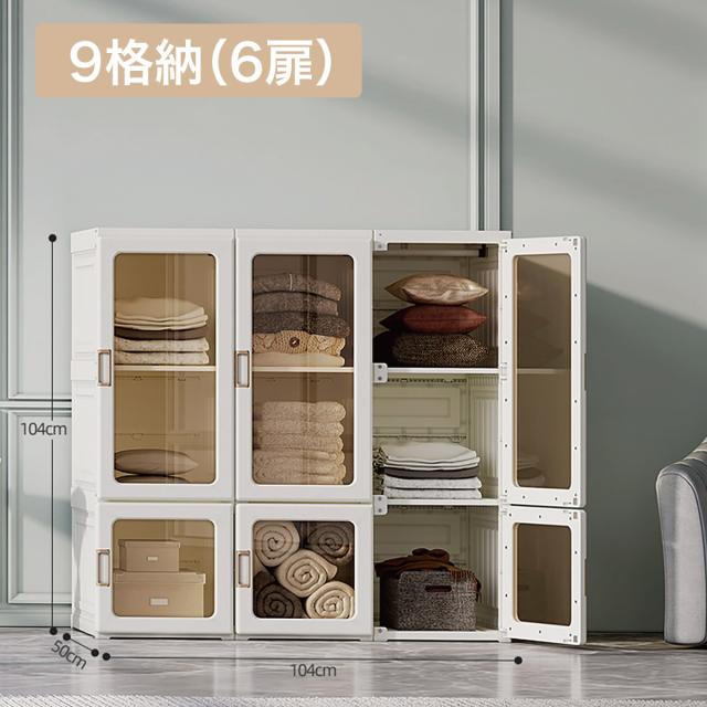 ワードローブ 一体折りたたみ式 9格納(6扉)洋服ダンス ワイドロッカー クローゼット ロッカー 収納ケース 収納 衣類 洋服 新生活 おしゃれ wardrobe02-9 agesugi_snk