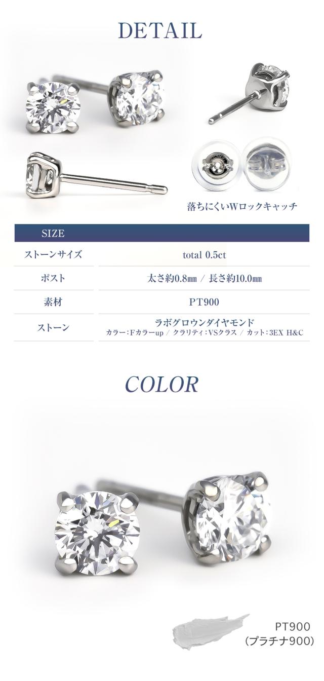 ダイヤモンド ピアス 0.5カラット 一粒 プラチナ キャッチ 落ちない 金属アレルギー ダイヤモンドピアス ダイヤピアス 一粒ダイヤ プラチナピアス PT900 ラボグロウン レディース ジュエリー アクセサリー シンプル ブランド 記念日 誕生日 クリスマス プレゼント ギフト