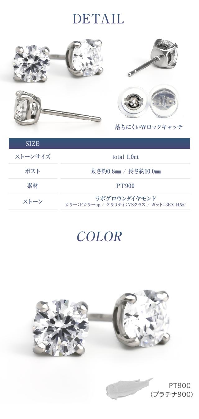 ダイヤモンド ピアス 1.0カラット 一粒 プラチナ キャッチ 落ちない 金属アレルギー ダイヤモンドピアス ダイヤピアス 一粒ダイヤ プラチナピアス PT900 ラボグロウン レディース ジュエリー アクセサリー シンプル ブランド 記念日 誕生日 クリスマス プレゼント ギフト