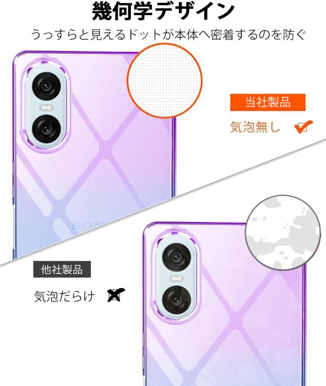 グラデーションのデザインで、端末の色により、違う色効果を現れ、Xperia10 VI の美しいデザインをより一層印象づける魅力があります。本体とピッタリ密着して違和感がない一体感が魅力的です。