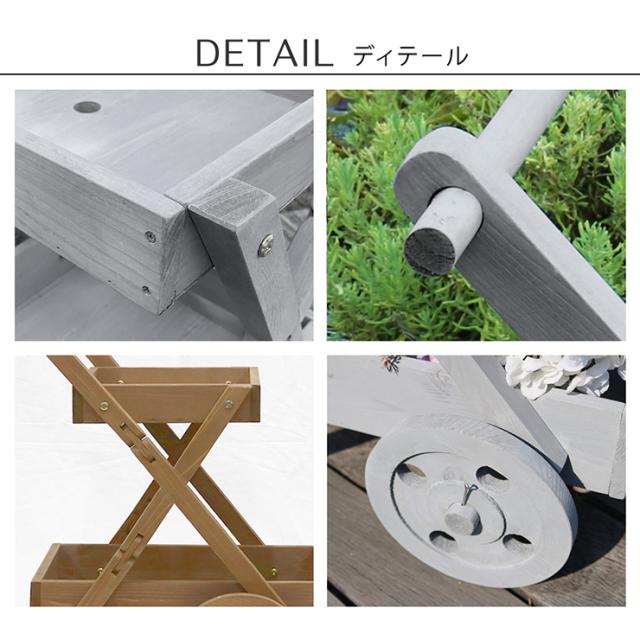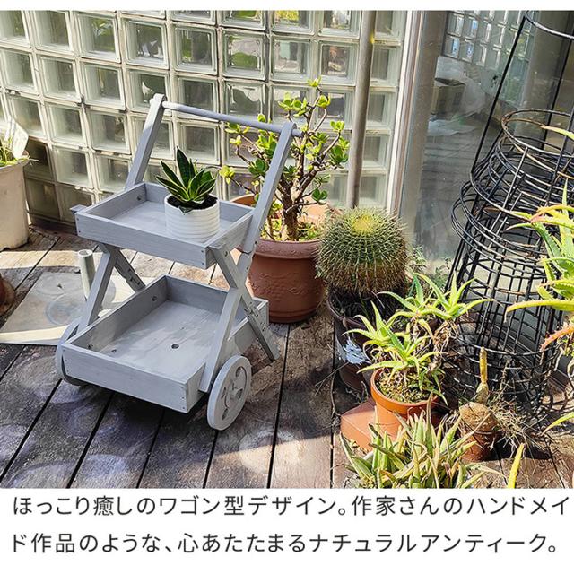 プランターラック おしゃれ 天然木製ワゴン型プランタースタンド 水抜き穴付き 寄せ植え 収納 ナチュラル アンティーク風 かわいい 庭 ダイニング キッチン