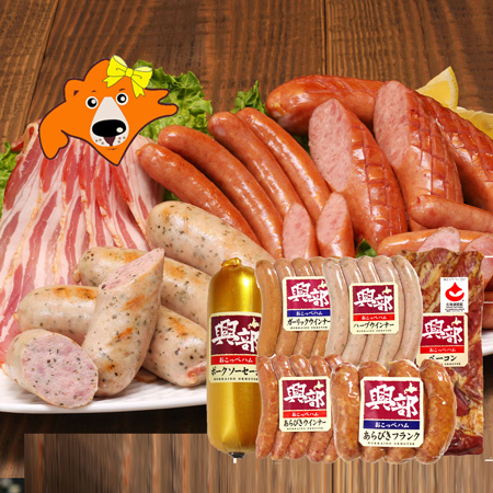 ハムギフト 送料無料 ハム ソーセージセット おこっぺハム ベーコン / あらびきウインナー / ガーリックウインナー / ハーブウインナー / あらびきフランク / ポークソーセージ 詰め合わせ 肉 肉加工品 ハム 詰め合わせ OP-440 北海道 興部 ハム