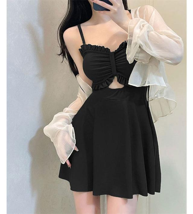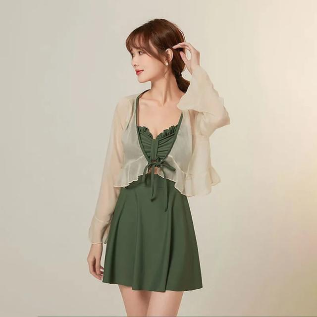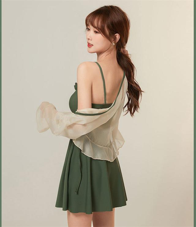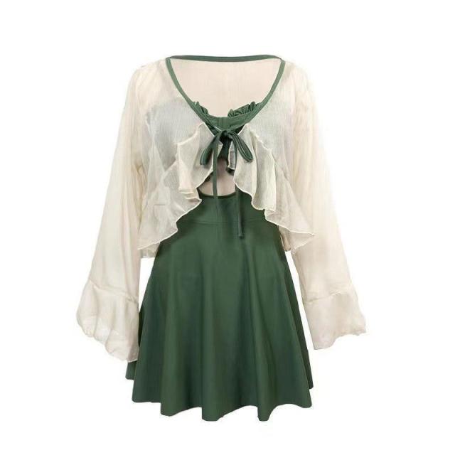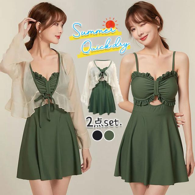最安挑戦!水着 レディース ワンピース水着 2点セット フレア 体型カバー 日焼け防止 おしゃれ ママ水着 セクシー スイムウェア 可愛い 海 ビーチ