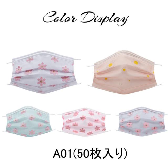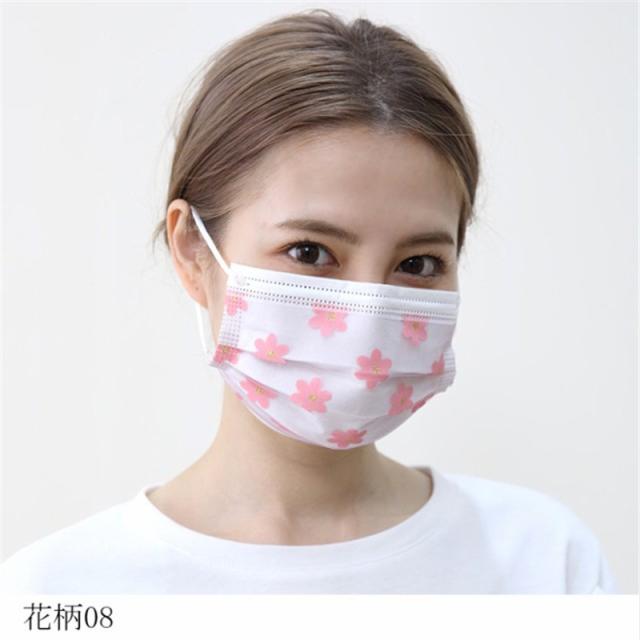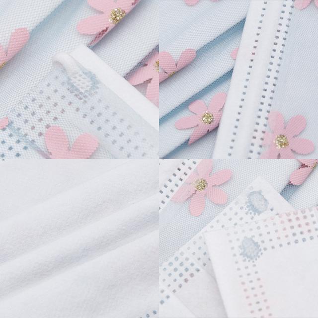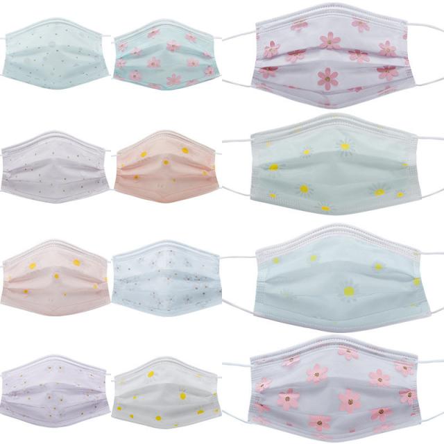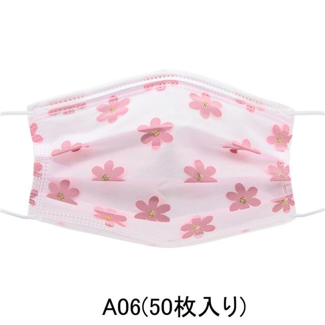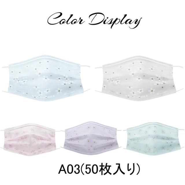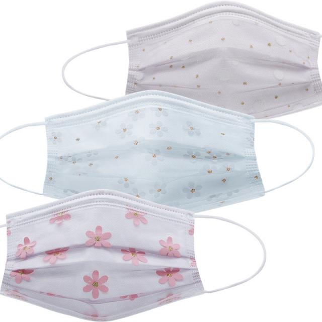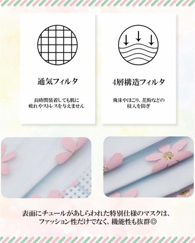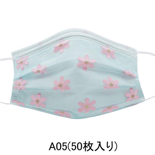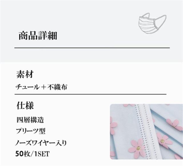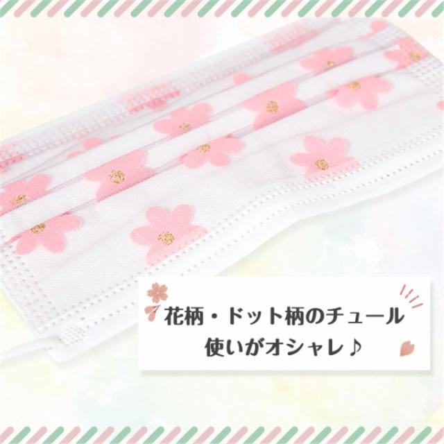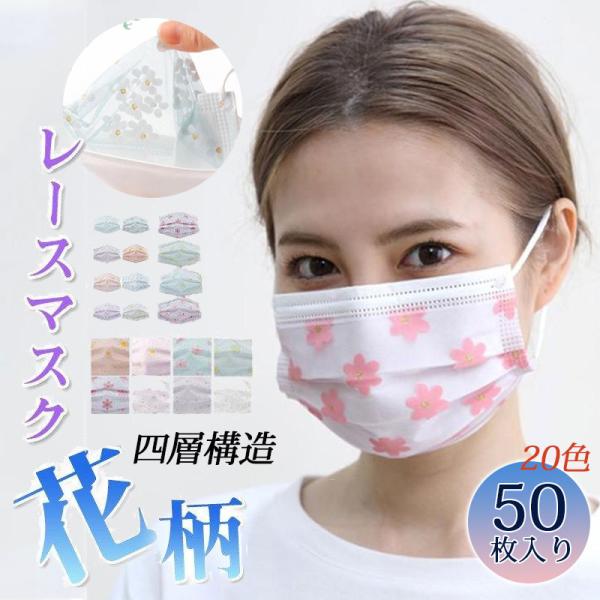 2点で5%OFF 当日発送 マスク 50枚入り不織布 チュールマスク カラーマスク 柄 使い捨てマスク 立体 四層構造 ドット 花柄 レース 大人用 柄マスク