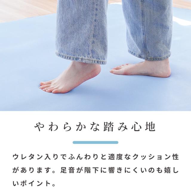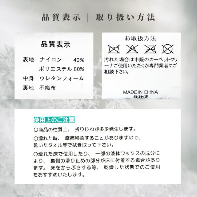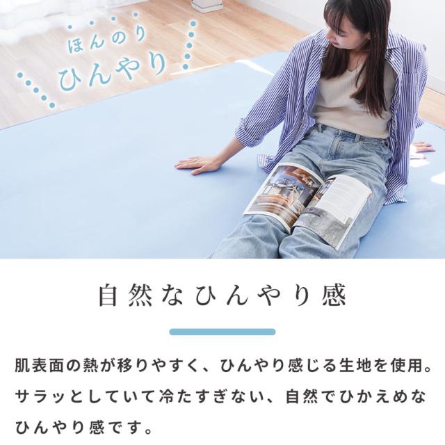 | ・自然なひんやり感 肌表面の熱が移りやすく、ひんやり感じる生地を使用。 さらっとしていて冷たすぎない自然でひかえめなひんやり感です。 ・やわらかな踏み心地ウレタン入りでふんわりと適度なクッション性があります。 足音が階下に響きにくいのも嬉しいポイント。 | |