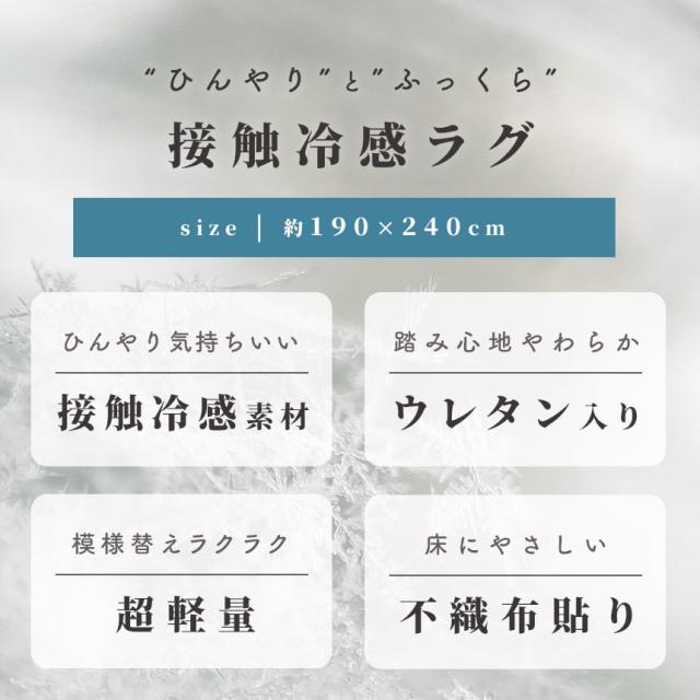 【訳あり】接触冷感 ひんやり 冷感マット 夏 涼感 夏用 cool 3畳 長方形 ラグ 低反発ウレタン入り センターラグ ラグマット 190×240 敷物