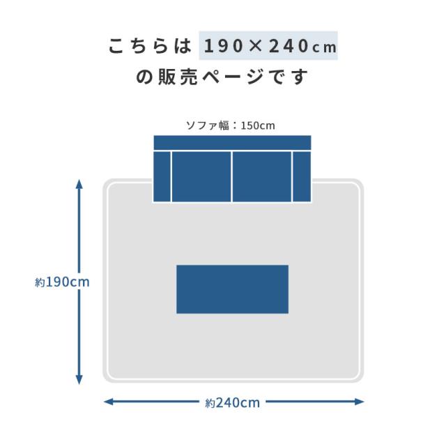 | サイズ | 約190 × 240 cm(約3帖用) |