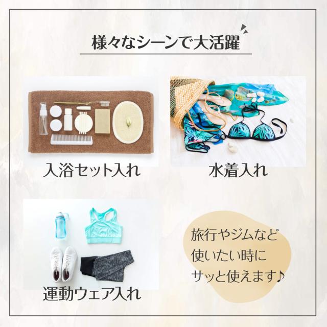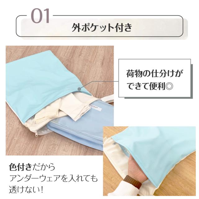 荷物の仕分けができて便利。色付きだからアンダーウェアを入れても透けない!