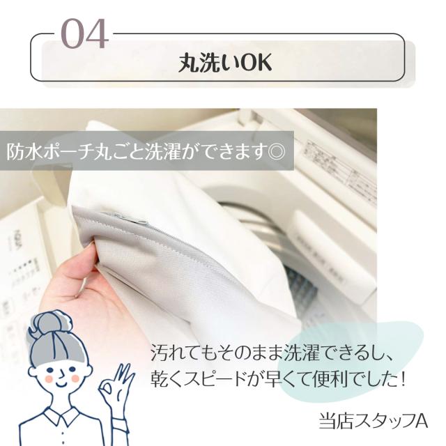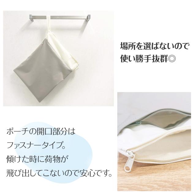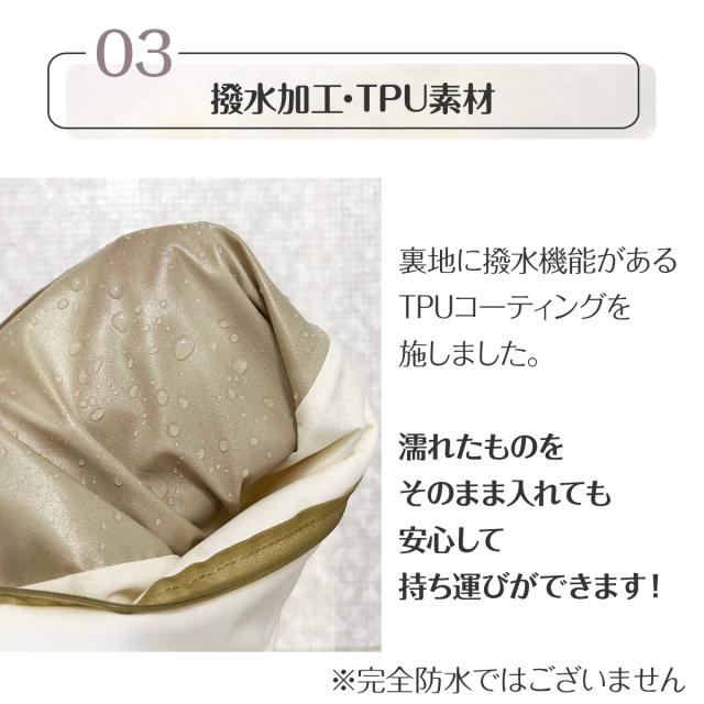 裏地に撥水機能があるTPUコーティングを使用。濡れたものを、そのまま入れても安心して持ち運びができます!