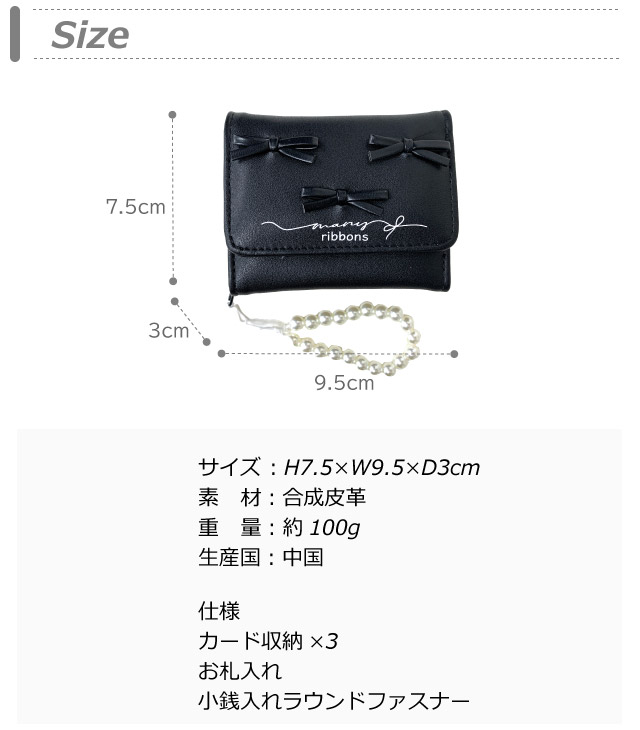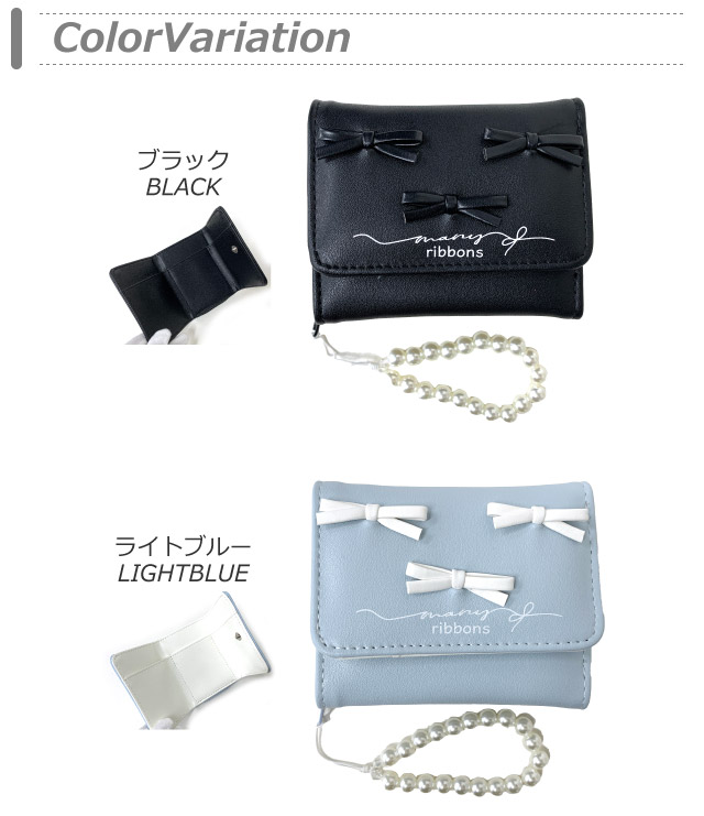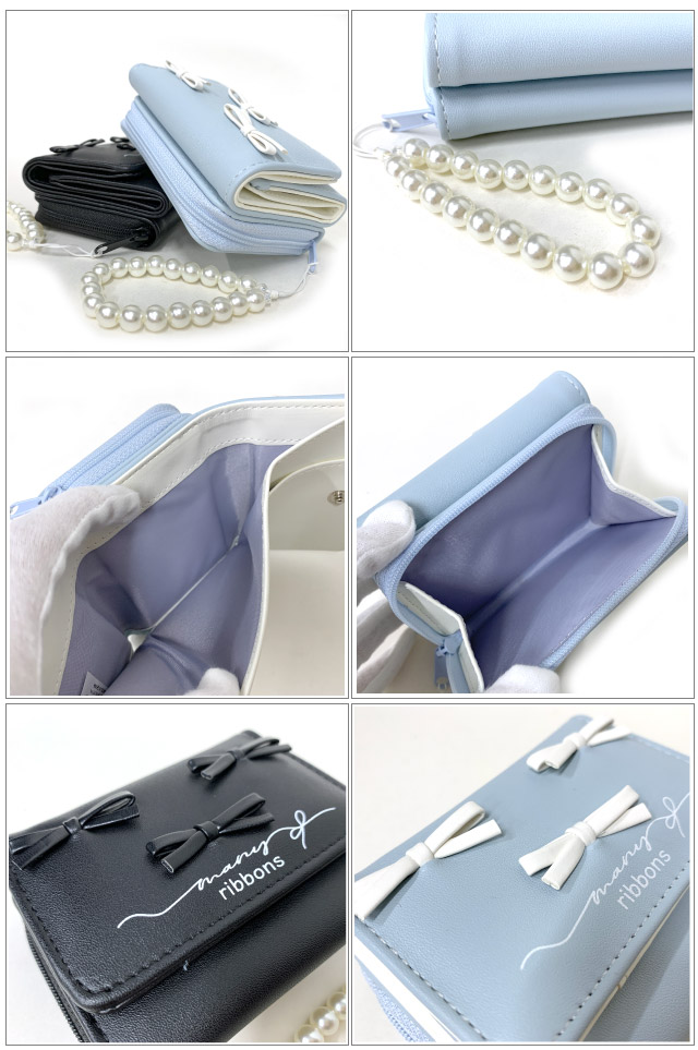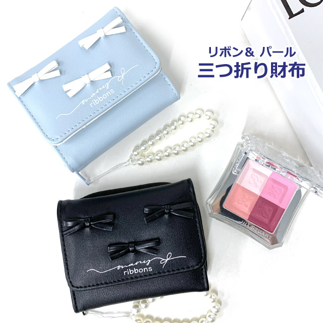■イメージ・その他:おしゃれ お洒落 人気 人気 ランキング 可愛い かわいい 使いやすい 大容量 黒 ブラック 水色 ブルー 大人可愛い 大人かわいい 大人っぽい レディース財布 3つ折り財布 三つ折り財布 小さめ ミニ ミニサイズ 包装 無料ラッピング ラッピングバッグ りぼん リボン パール パールストラップ付き