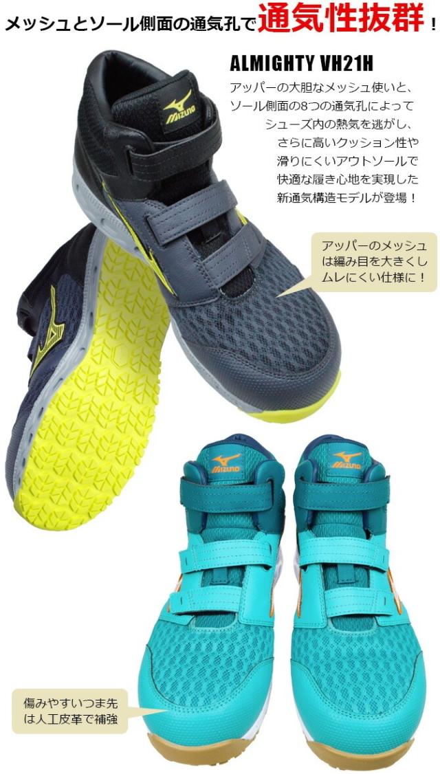安全靴 ミズノ MIZUNO オールマイティ ALMIGHTY VH21H F1GA2409 ハイカット メンズ レディース マジックテープ おしゃれ 通気性 屈曲性 耐油 安全スニーカー 作業靴
