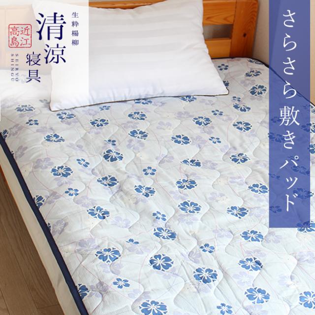 敷きパッド 日本製 綿100% 近江高島ちぢみ オールシーズン 肌ふとん 綿 夏用 花柄 通気性 速乾 さらさら 高島ちぢみ さわやか 洗える ウォッシャブル サラサラ シングル 100×200cm ちぢみ シングルサイズ 涼感 洗濯機で洗える 春夏 秋 コットン ブルー