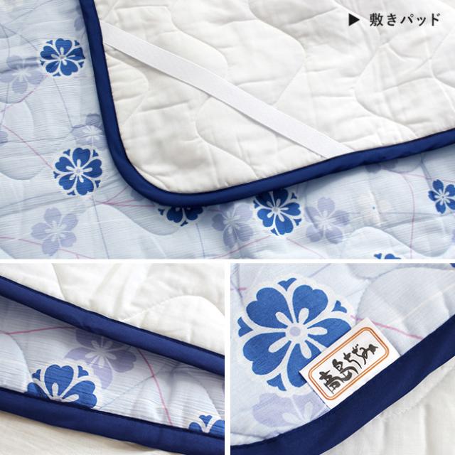 【商品名】近江高島ちぢみ 肌布団&敷きパッド セット《花柄・ブルー》