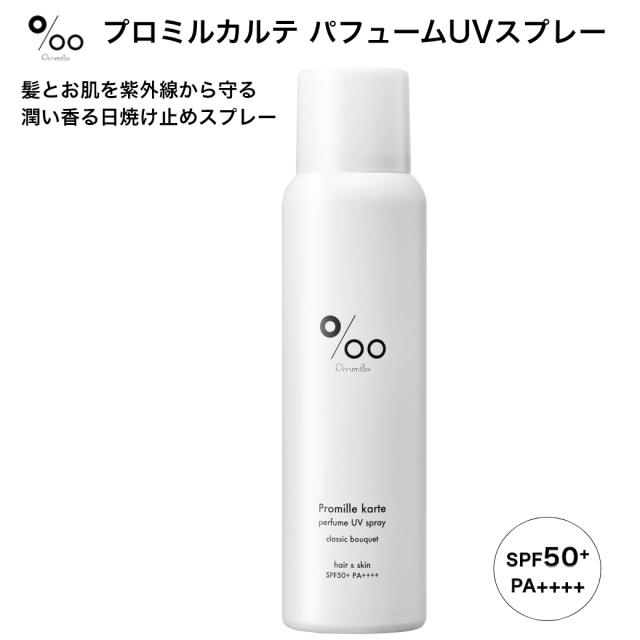 プロミルカルテ パフュームUVスプレー SPF50+ PA++++ 80g日焼け止め スプレー クラシックブーケの香り 髪 頭皮ケア 肌 天然由来 ツヤ髪 紫外線対策 UVケア