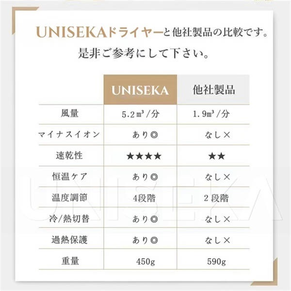 ヘアドライヤー UNISEKA正規品 速乾 大風量 ドライヤー 高級 サロン 美髪 静音 マイナスイオン 温度調整 冷熱風ヘアサロン 4段階調節 送料無料 超軽量 旅行用 持ち運び便利