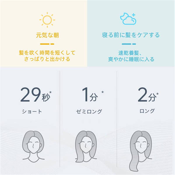 - 今まで使っていたものが重かったので、こちらは軽くてよいです。髪が長いのですが、早く乾くので時短になります。