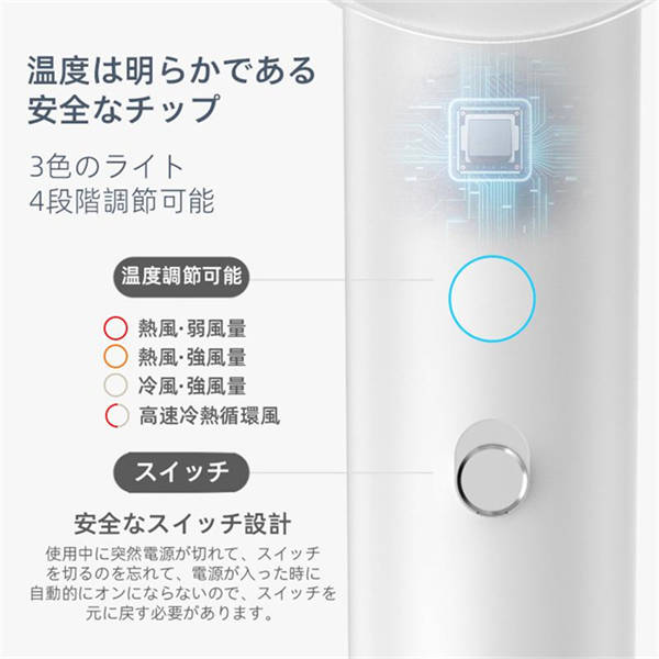 - ドライヤーの点灯の色が説明書と違うし、説明書の意味も何か分かりにいが、使えるから仕方なく使っている。風量はあるがあまり熱くなりすぎないのだけは評価する。