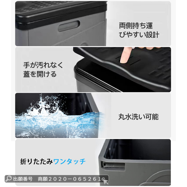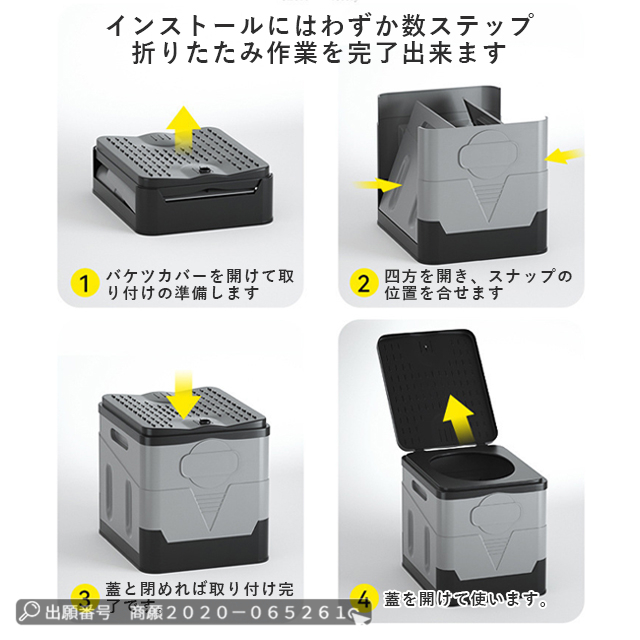 | 取り付け簡単 | ◆1、周りの板を開いて、バックルと合わせて ◆2、ビニール袋をつけます。蓋を閉めます ◆3、使用後に袋をきちんと閉めて、取り出して処理します。 |
