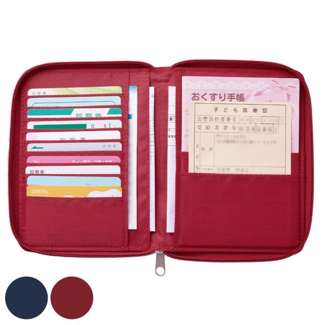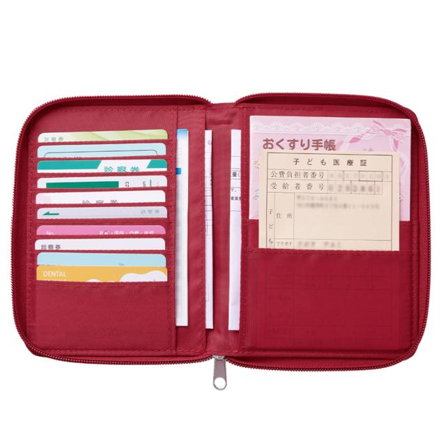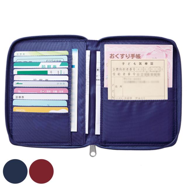 お薬手帳ケース 通院ケース コンパクト 15ポケット ( お薬手帳 保険証 診察券 カードケース ファスナー 母子手帳 ケース ポーチ ベビー マルチケース 貴重品入れ カードホルダー カード カバー スリム 携帯 紛失防止 整理整頓 )