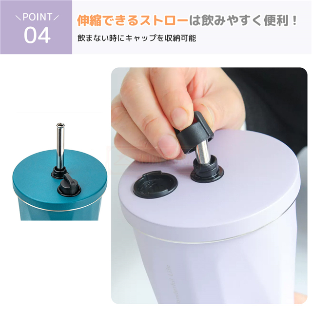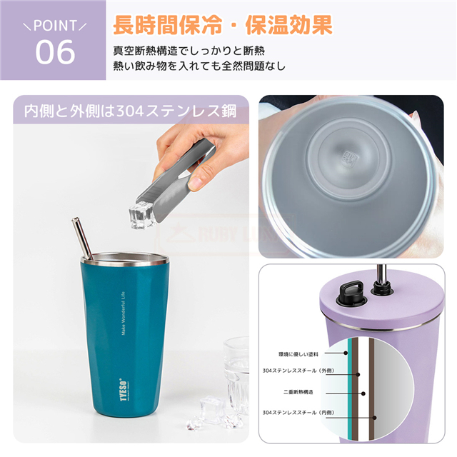 | 素材 | ◆カバー:PP+304ステンレス鋼(SUS304)+シリコン ◆ストロー:304ステンレス鋼(SUS304)+シリコン 本体素材:内外304ステンレス鋼(SUS304) ◆保温時間:6-12h |